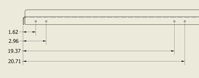 Locate where the holes will need to be drilled. Using the figure below it can be seen that the mid point of the structural member is at about 2.95”. Rounding to 3” is acceptable. This distance is measured from the 45° bend.