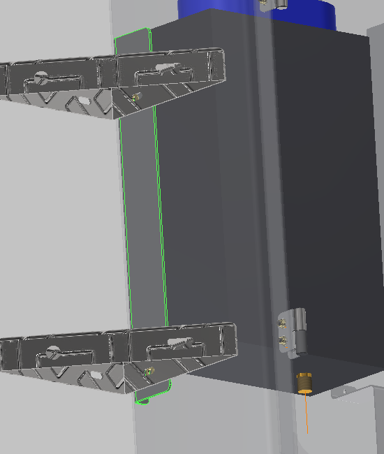 The furnace location is shown above with the door hidden for clarity. The blue and red "pegs" on the RHS or trailer rear of this representation are the fresh air intake and combustion air exhaust. The ducts in grey at the top are the supply and return to the cabin interior. These must of course be disconnected in order to remove the furnace unit.